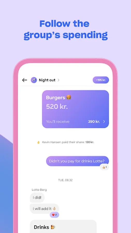See what your friends are adding, what you owe each other and what your total spending is. Chat and comment in the group.