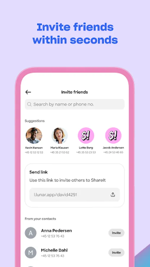 INVITE FRIENDS WITHIN SECONDS
