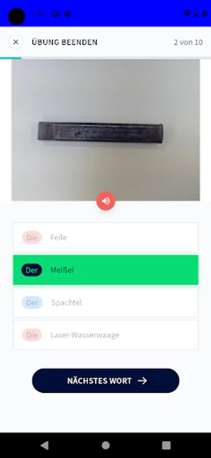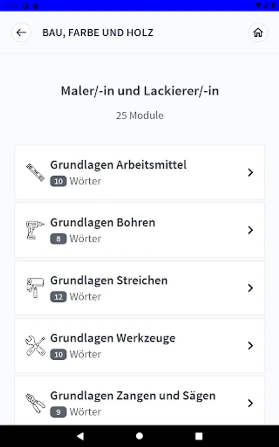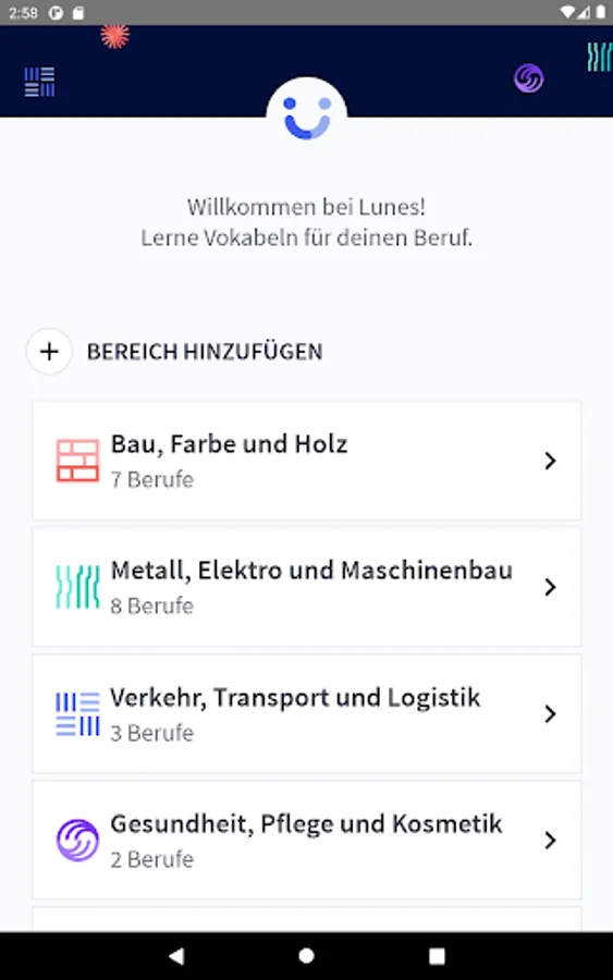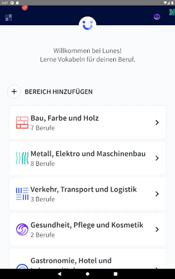Lunes accompanies you in school, apprenticeship and work - whether in care, craft or in the office. No registration is necessary for this. In various modules there are numerous illustrated technical words with additional reading functions. Through various forms of exercise (multiple choice, practicing articles or writing whole words) learning and keeping the vocabulary is encouraged and fun at the same time.