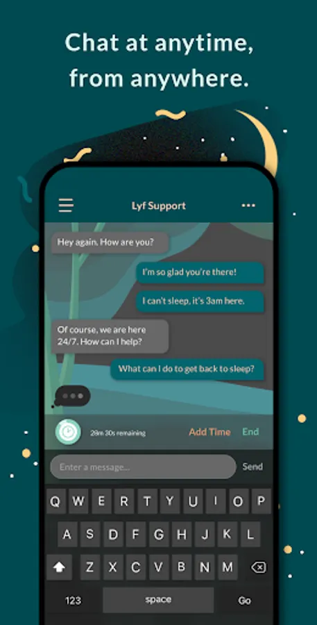 of fully qualified mental health professionals. It’s like being able to text your psych anytime you need them. No obstacles like questionnaires or having to wait hours or days to be matched. You’ll get immediate responses, help and advice from a team who genuinely care.