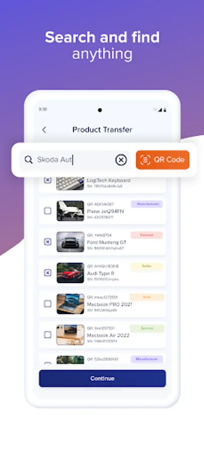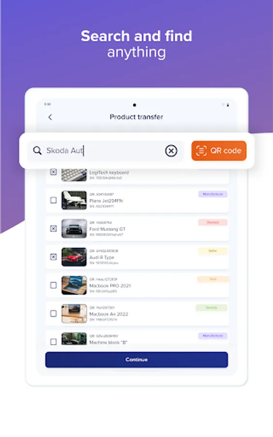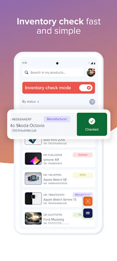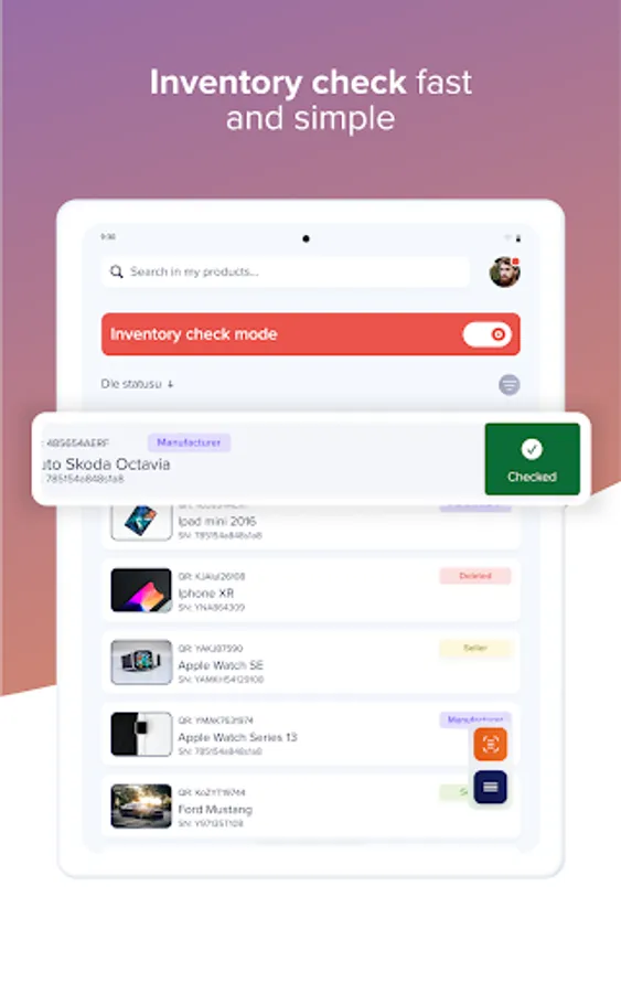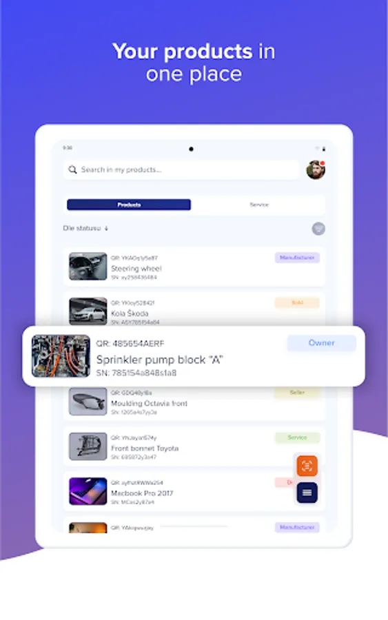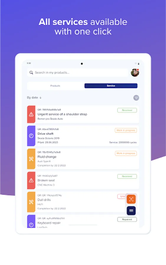 - Record your products using a unique QR code and with its help you have an overview of their status.