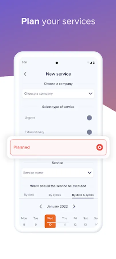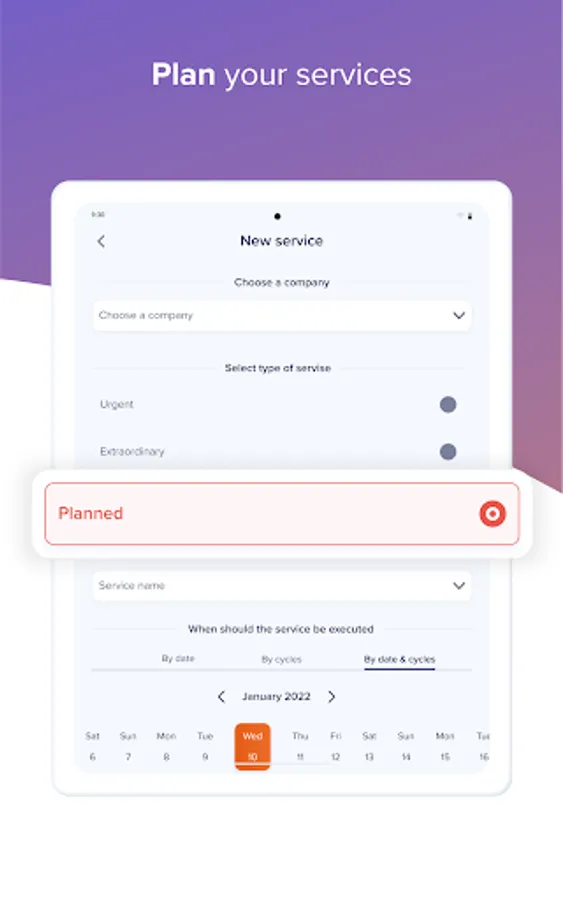 - The service detail allows you to insert texts, photos, spare parts, manuals all in one place