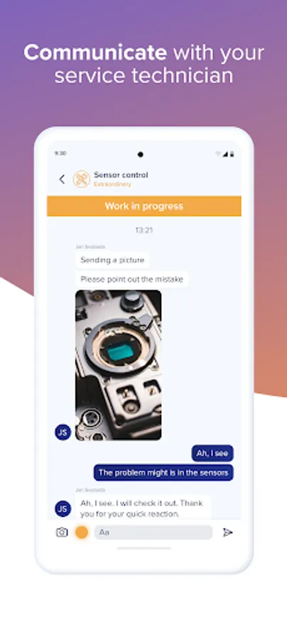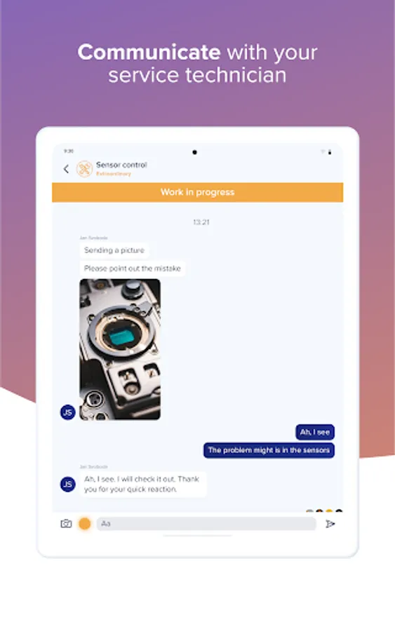 - The possibility of an online communication with a service technician during the ongoing service