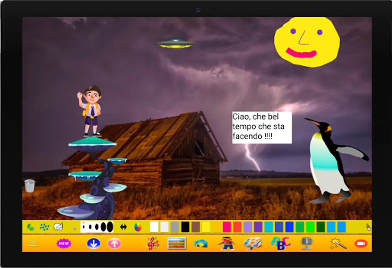 For Tablet only. Comic Draw is an unusual graphics and animation program that allows the creation of illustrated stories and then reproduced via video. It provides a Paint program and a series of backgrounds, sprites, music tracks, voice recordings, small animated objects with which you can create unusual animations in a simple and intuitive way.