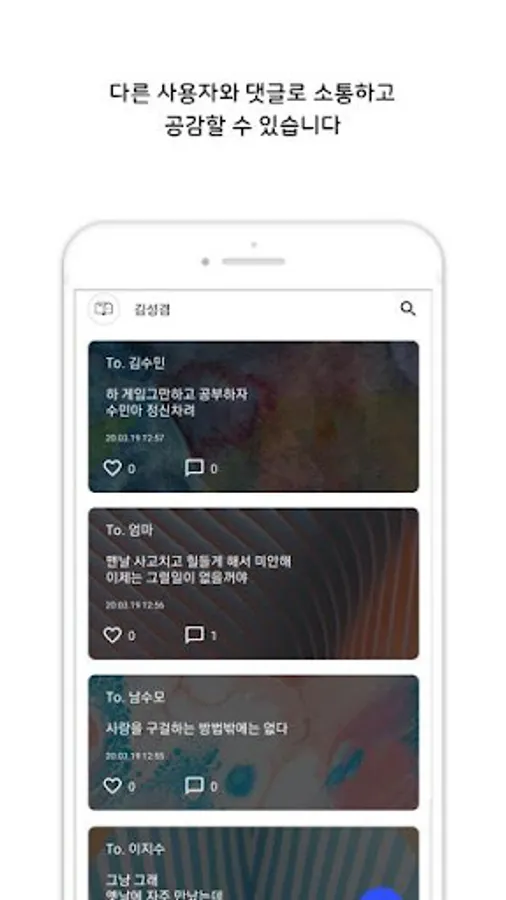 다른 사용자와 댓글로 소통하고 공감할 수 있습니다.