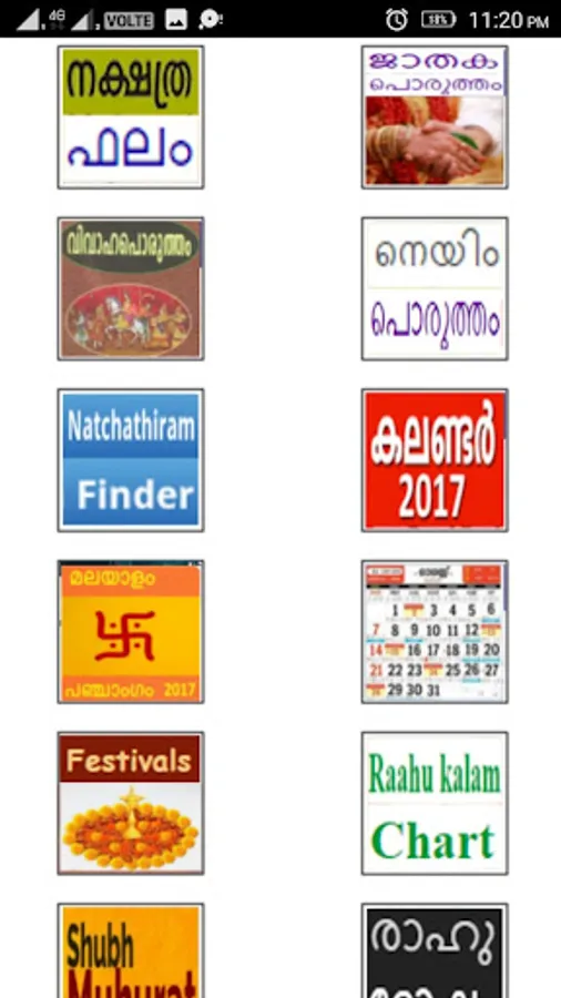 14. Monthly calender:Monthly calender in malayalam with all panchang details are available here.