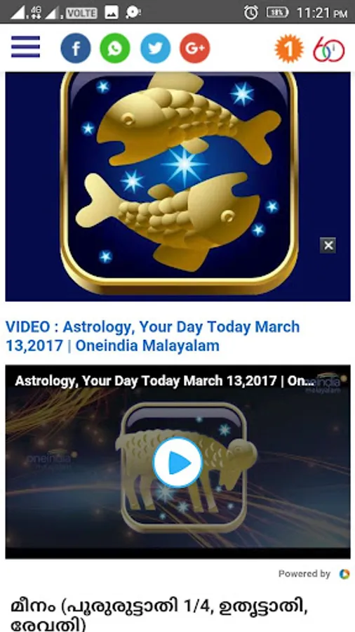 2.Daily rasi palam:Todays rasi palam for all 12 rasis are givan here in malayalam.