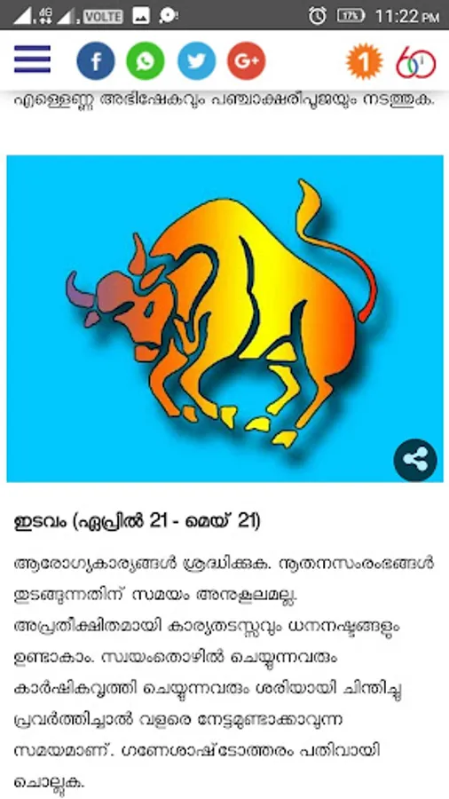 4.Monthly rasi palam. Current month rasi palam for all 12 rasis are written here in malayalam.