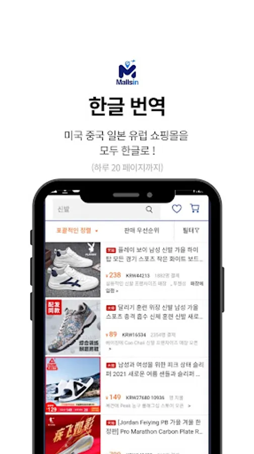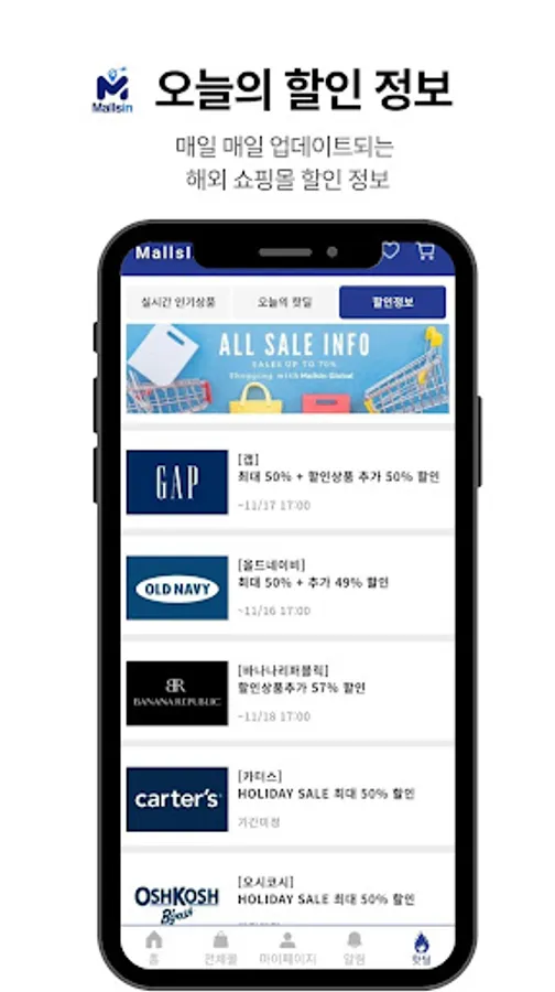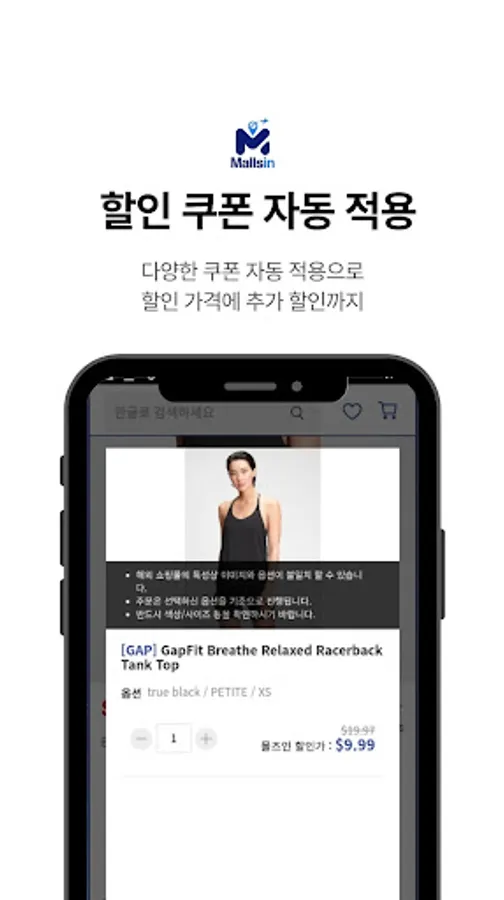 You can shop easily and conveniently by providing functions frequently used in the browser, such as size chart/category view/go to the shopping mall main home/refresh, etc. in the Mallsin app.