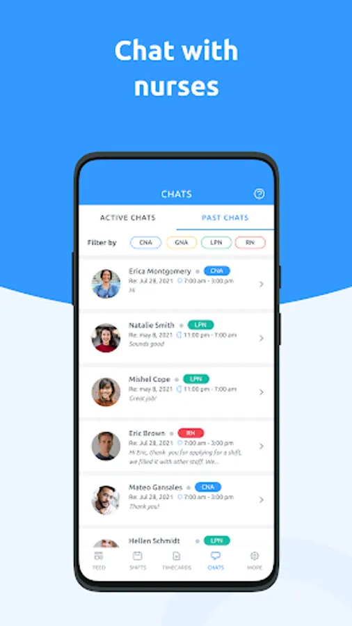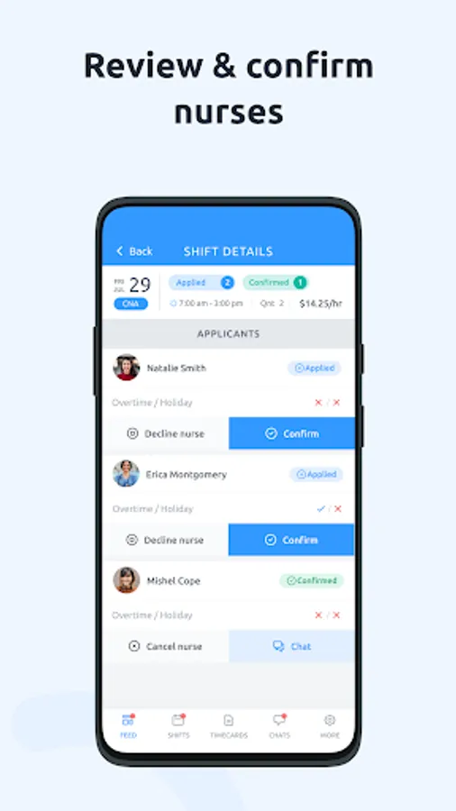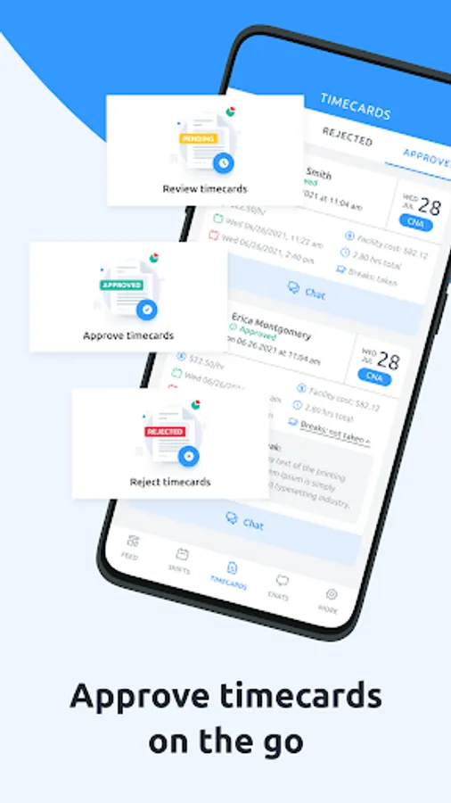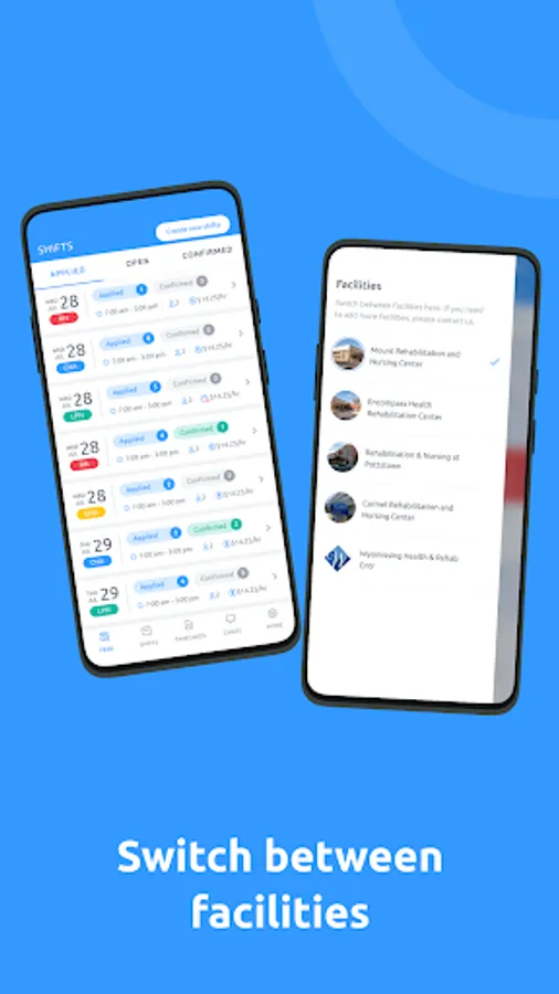 Our ESHYFT app for Facility Managers lets you manage your facility on the go, you can use it to find and accept nurses, approve timecards, chat with your nurses, post shifts, and more.