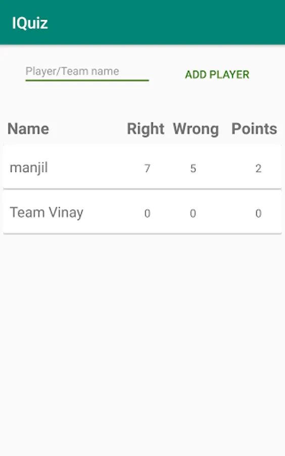IQuiz helps to create IQ tournament with family, friends or relatives. Make your group first and then create team or players and customise your own quiz, that is related to your family, social or political locally or global. If you answer is correct you will win 1 point and 1 point is deducted for a wrong answer. Have fun and enjoy it.