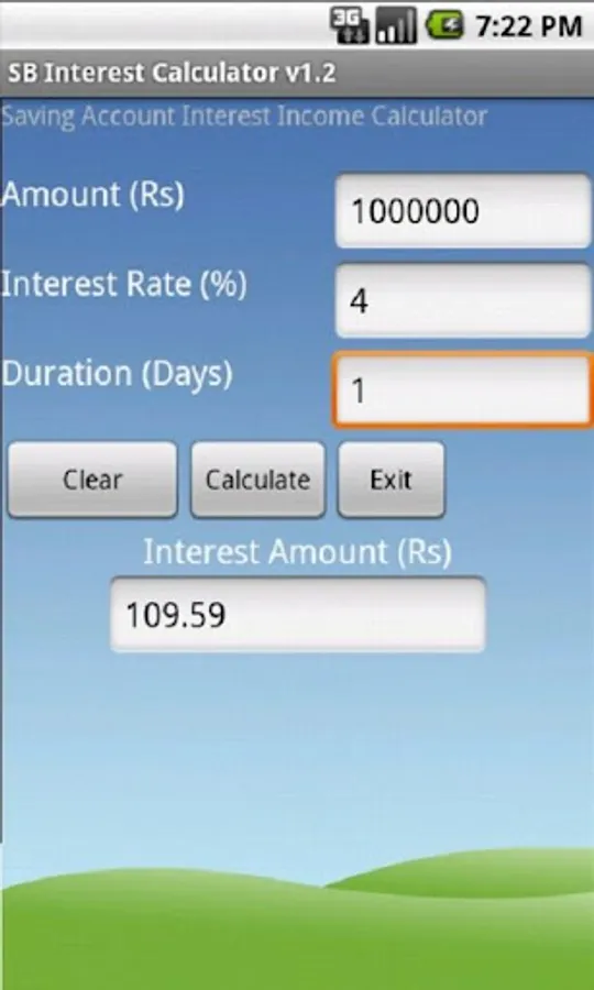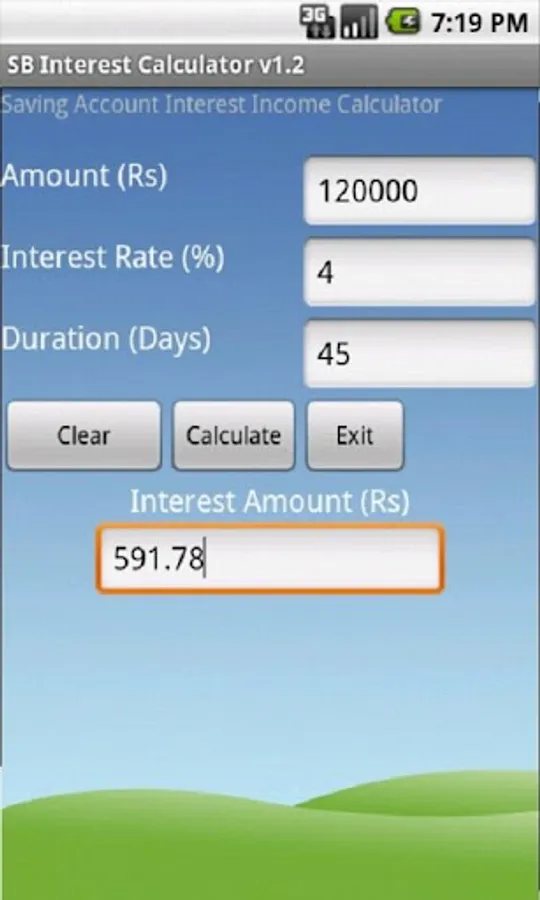 "SB Interest Calculator" helps you to find how much interest amount you can earn based on number of days.
