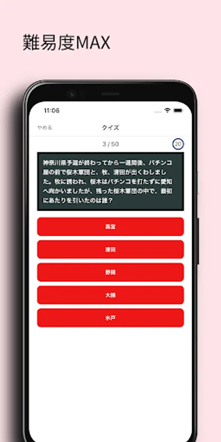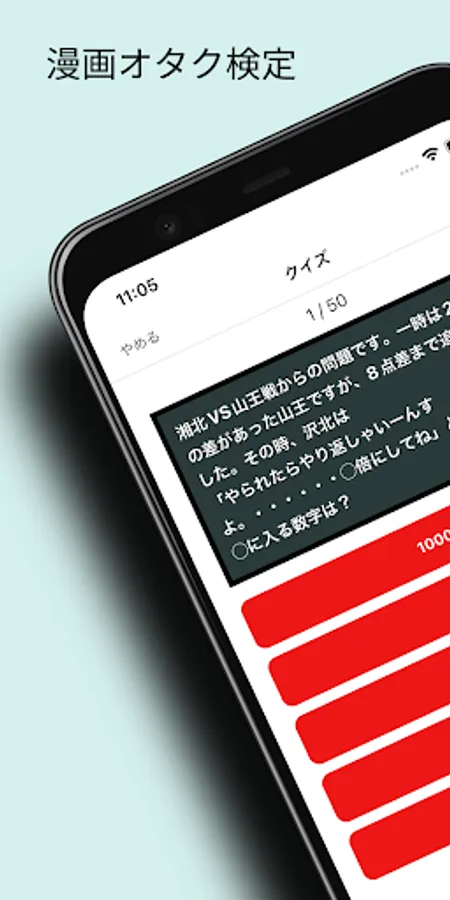 Randomly select 50 questions from a total of 500 or more quizzes and ask questions.