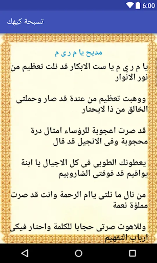 It is also in the annual Tasbeha with the addition of a few additions, a spoken throughout the month of Kiahk even Albramn and the Church of the Virgin Mary focused on the so-called Kiahk Marian month.