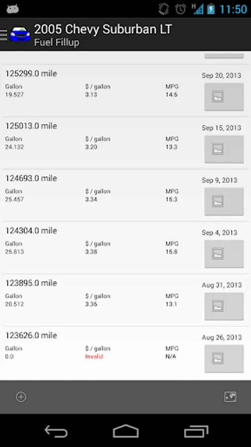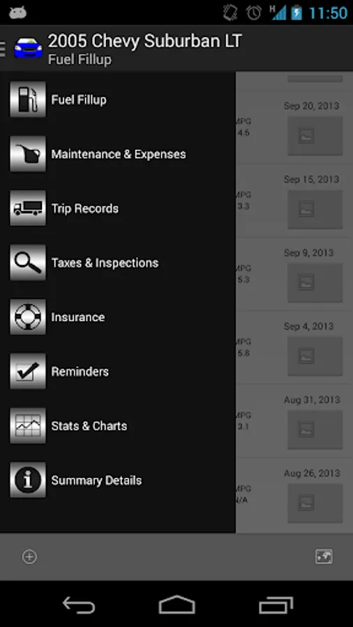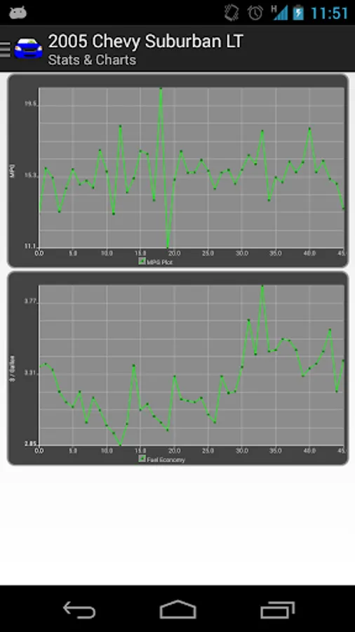 - View stats on your fuel economy (e.g., miles/gallon) and fuel prices (e.g., $/gallon)