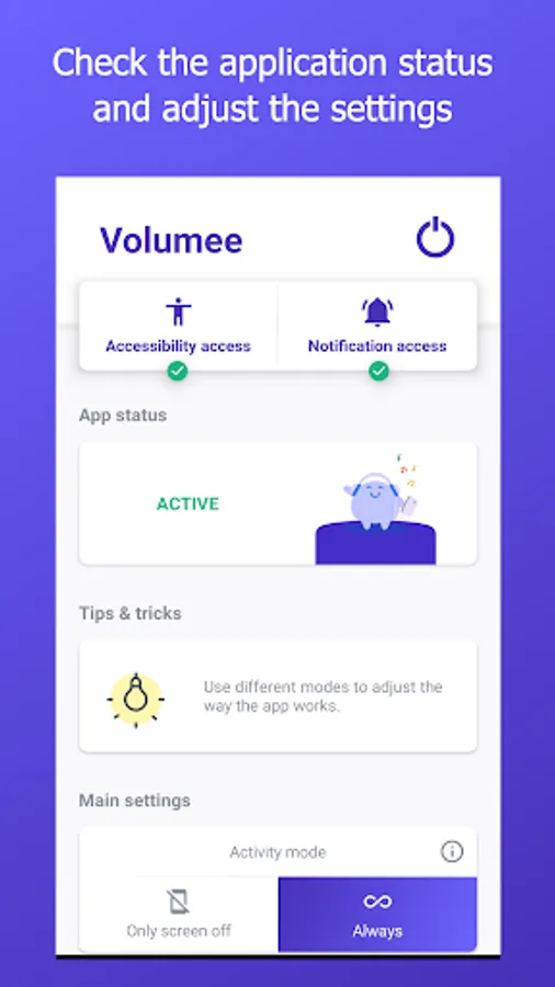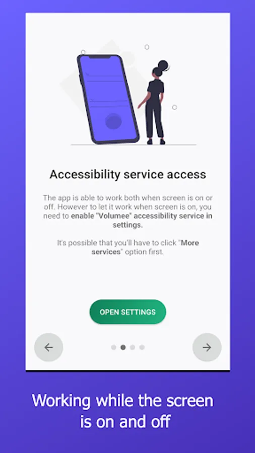 The application is able to work both while the screen is on and off. In contrast to other similar tools, it works properly regardless of the application that is currently open.