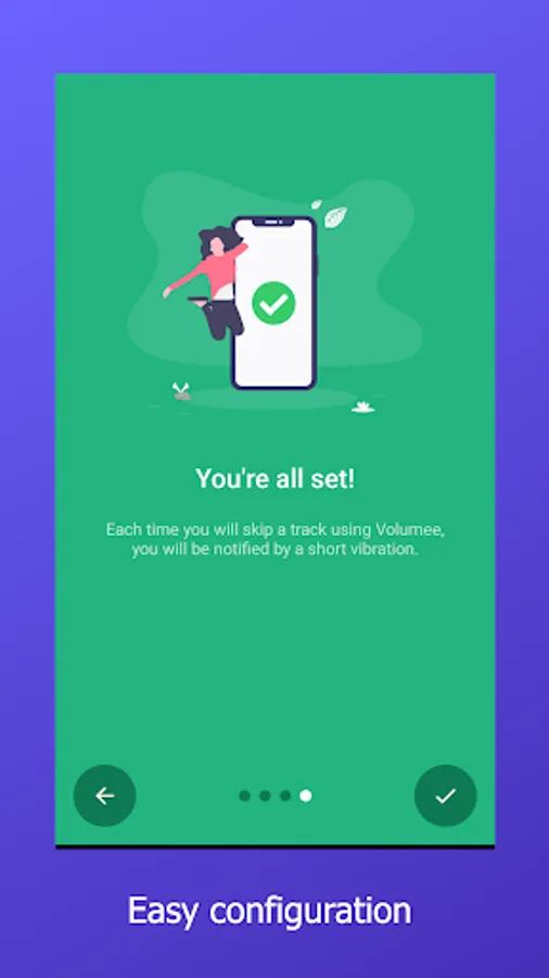 Volumee is compatible with all the most popular music apps - a track will be skipped in the player which is currently active. The service works in background, responding to volume buttons clicks only when it is needed (i.e. when any recognized player is displaying a notification). Otherwise volume buttons work as usual.