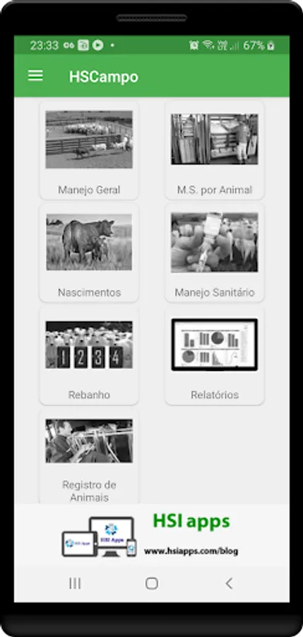 HSCampo adapts to the different needs of each property, and can be used as a simple "data collector" in which the pedestrians only record the maneuvers performed in the field (births, cesarean sections, medication application, location of animals in batches and pickets, deaths , categories, weighing, ...) and transmit them, via e-mail or XML file, to the farm administration that performs the data processing in its management application, or as a micro ERP where the information of each animal is (date of birth, name, hbb record, father, mother, role of the animal in the property, reproductive status, ...) and accompanied in the tool itself.