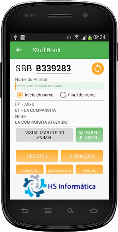 - Stud Book: page for animal registration consultation via web, this registration can be imported to the app by the "Save in Squad" button. Note: Internet access is required for consultation;