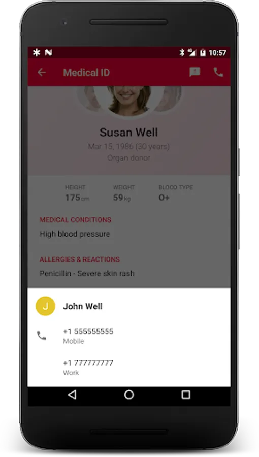 Medical ID allows creating medical profiles that are accessible from your lock screen. In case of emergency, profiles enable quick access to vital information such as your allergies, blood type, medical contacts, etc. that are essential to attending first responders, medics, or medical staff having to take action. You can also share your location with emergency contacts even when the app is closed (for up to 24 hours or until you stop sharing).