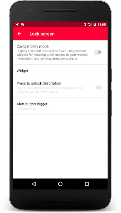 The display and access of your medical information from your lock screen are made possible via an accessibility service to enable and that is part of the core features of the app. Once enabled, the accessibility service displays a widget over your lock screen. This widget helps people who have disabilities, or first responders in case of emergency, to take action and access medical data.