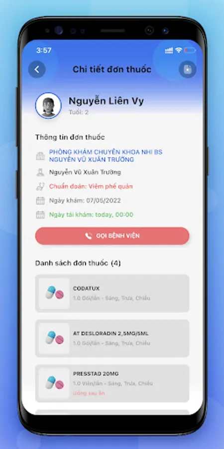 The application can remind you of the time to take your medicine, the date of your follow-up visit, and remind you to do other healthy actions.