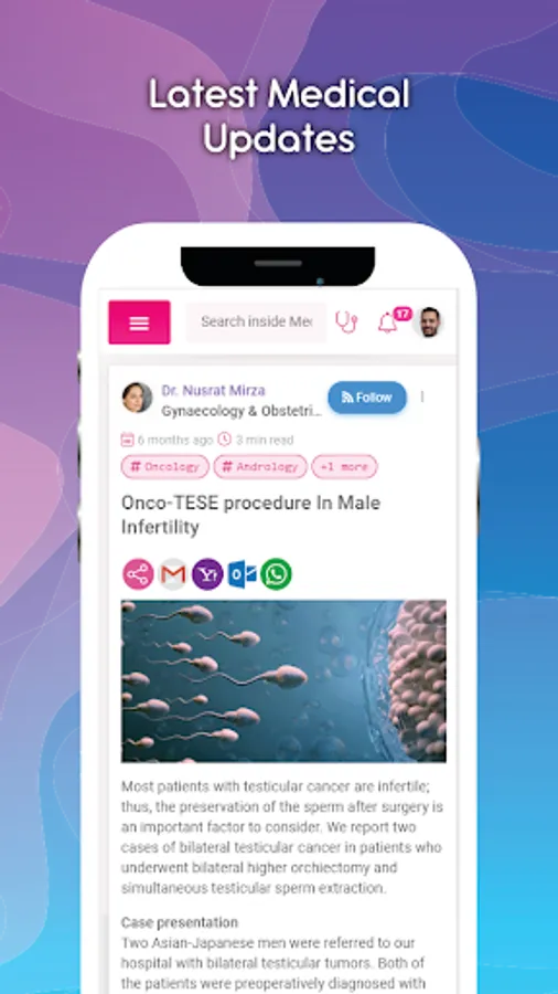 The latest medical updates and clinical discussions on MedSynapse help you stay on top in your specialty, without the hassle of sorting through tons of medical journals. You can also take webinars and online CME/CEU from the comfort of your home. Connect, collaborate and communicate by downloading one single app on your mobile phone.
