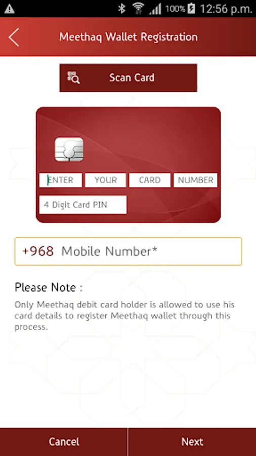 Meethaq Wallet allows anyone with Meethaq Islamic bank account to access the wallet from a mobile. Once you add funds to your Meethaq Wallet, you can send money to your friends in Meethaq Islamic bank just by using their mobile no, send money to non-Meethaq Islamic bank customer’s wallet by using their mobile no/alias (CBO’s mpclear platform) and send the money back from your Meethaq Wallet to your Meethaq Islamic bank account. All these services are completely free of cost.