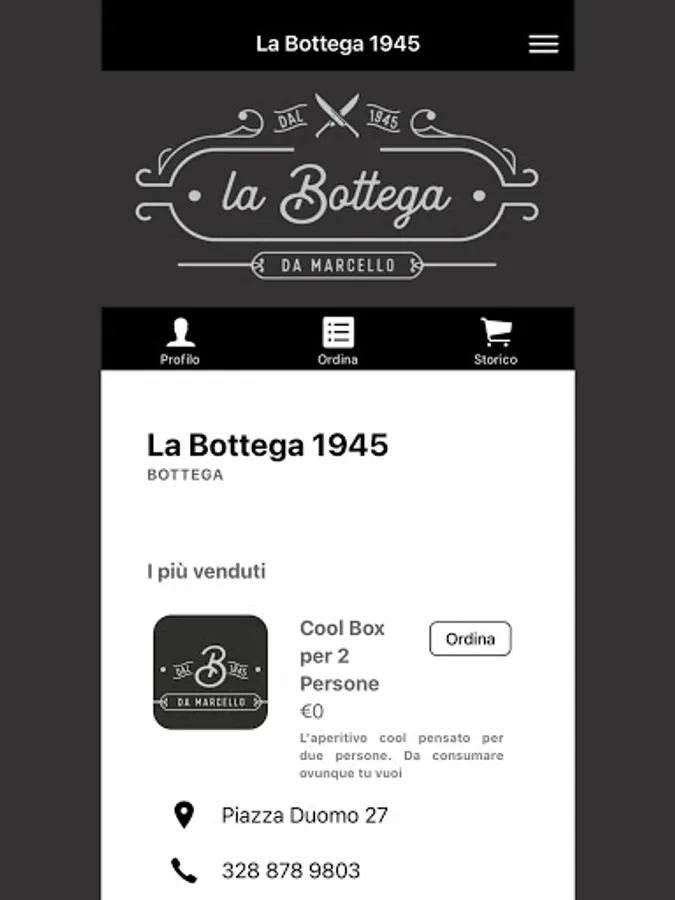 The App dedicated to all friends of Bottega 1945, located in L'Aquila in Piazza Duomo. By downloading this App you can consult our products at any time, see the prices, choose what you prefer, order our famous CoolBoxes from your home