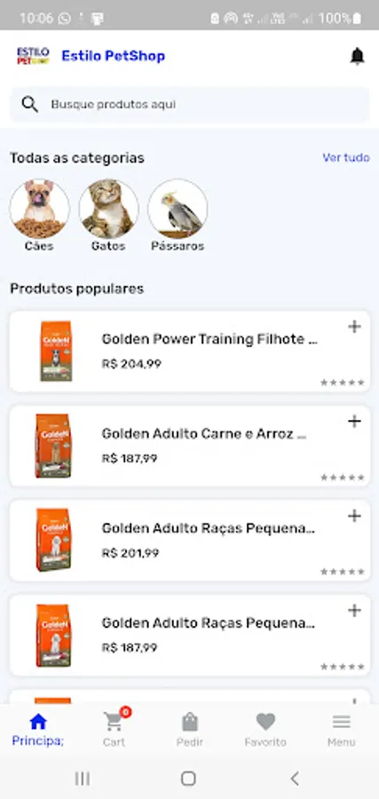 Find in the app what you need for your pet and receive it at the convenience of your home!