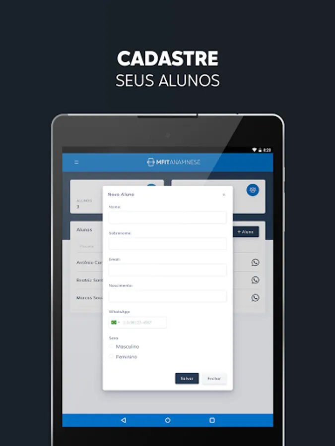 If you are a Personal Trainer and are looking for ease in the application of anamnesis, this is the right app. Customize your anamneses and send to as many students as you like.