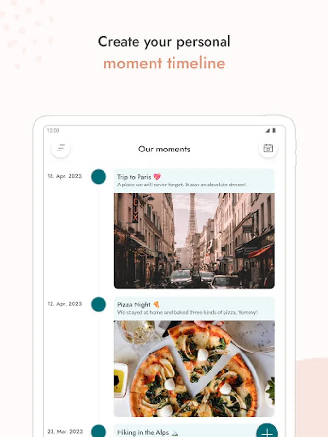 Add moments you experienced and enrich them with own pictures or tags. That way you create a beautiful timeline of your relationship so that you will never forget those ✨special✨ occasions 😉