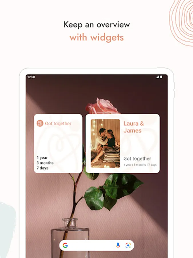 With our days counter widget you will never forget an important relationship event again. You'll know exactly how long have you been together with your partner.