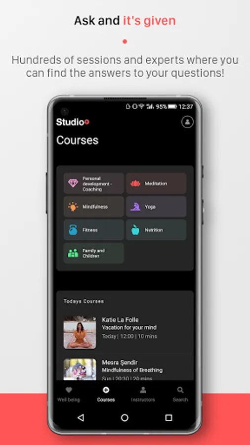 You can learn well-being concepts such as Mindfulness, Meditation, Yoga, Diet, Sports and Coaching with live video calls with experts.