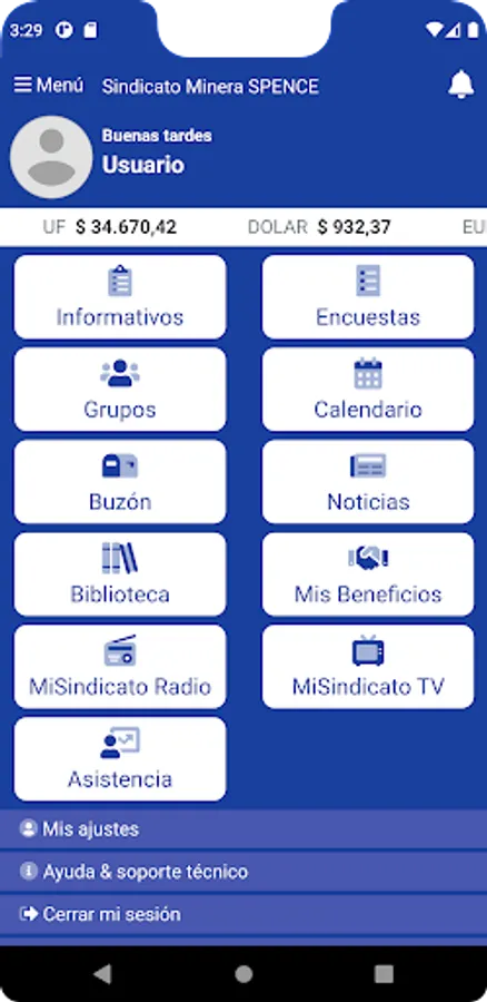 Application of internal communications for the members of the UNION OF MINERA SPENCE WORKERS.