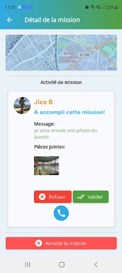 You receive a notification with each new mission/geocall available and can complete the missions/geocalls with texts, voice messages and photos.