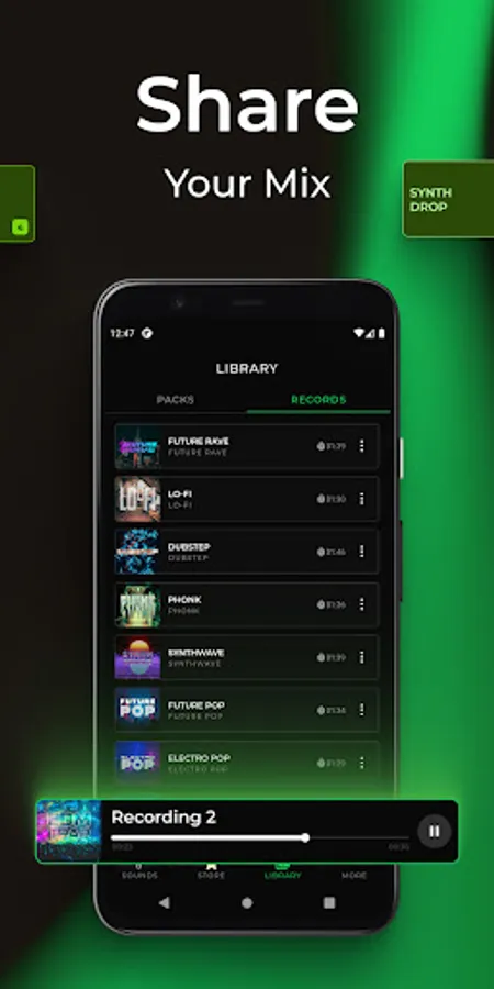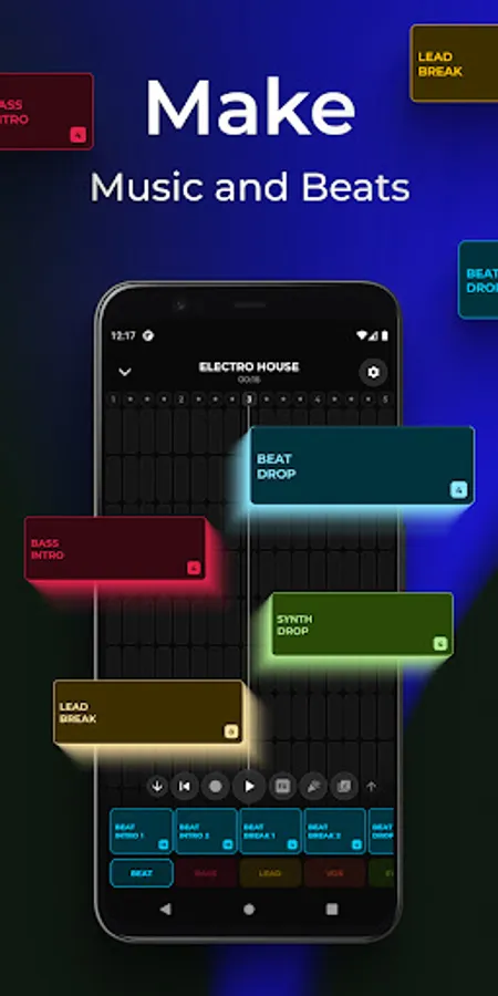 ✔️ Record - This feature allows you to record your songs in a way that real music producers do. Start it with a single tap before you start making the beats!