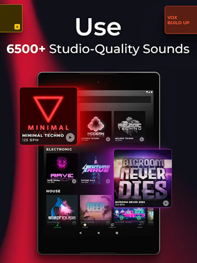 Choose between more music packs based on what type of music you want to create. In each of the music packs, there are layers of sounds such as Beat, Bass, Lead, Synth, Pluck, and many more. Each of these layers has its own sounds that should be played in an arrangement such as Intro, Break, Build Up, Drop, etc.