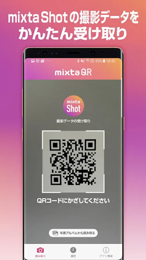※mixta QR以外のアプリで撮影データを受け取ることは出来ません。