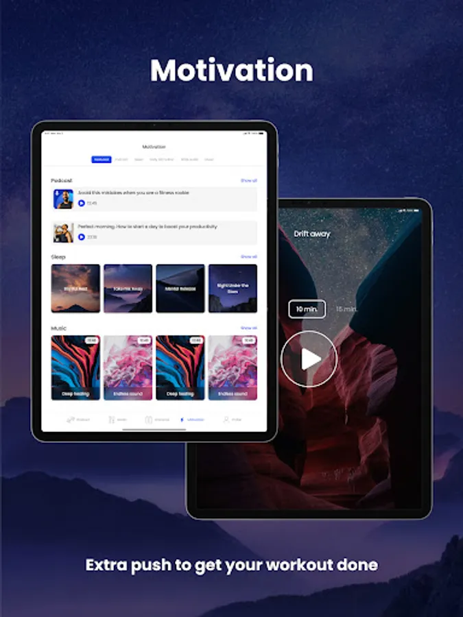 Getting enough rest and quality sleep is an essential part of achieving your fitness goals as it can boost your mood, energy levels, and overall health. To aid your motivation, the app provides you with access to exclusive podcasts and talks, as well as a variety of calming sounds and ambient music to help you relax and fall asleep quickly.