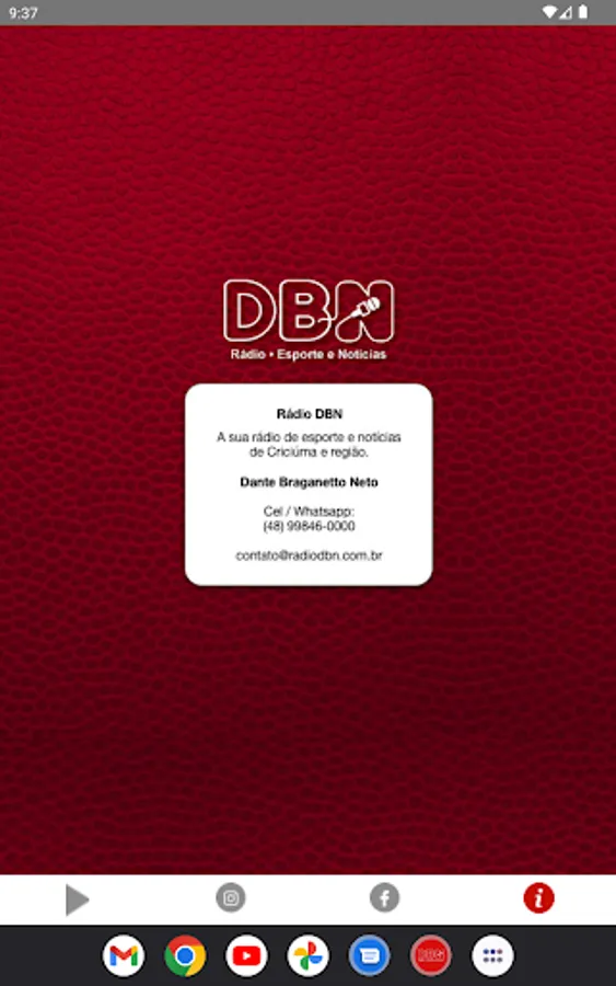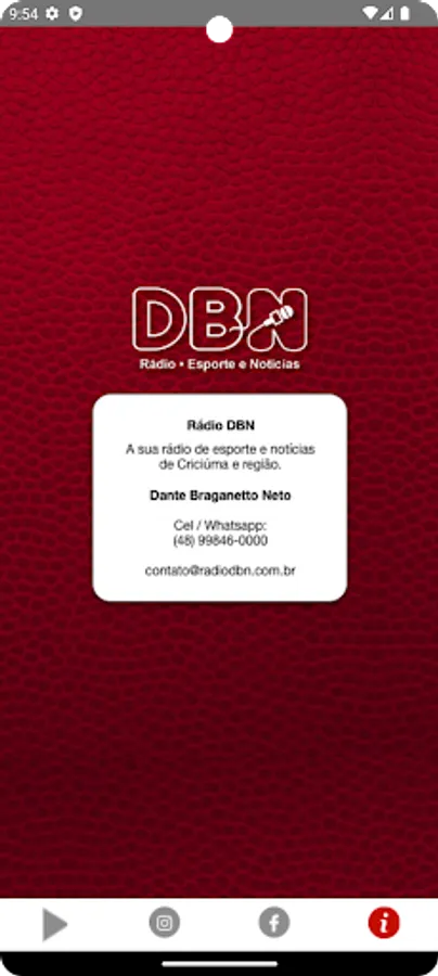 The official application of Radio DBN from Criciúma - SC. Lots of good music, football and sport.