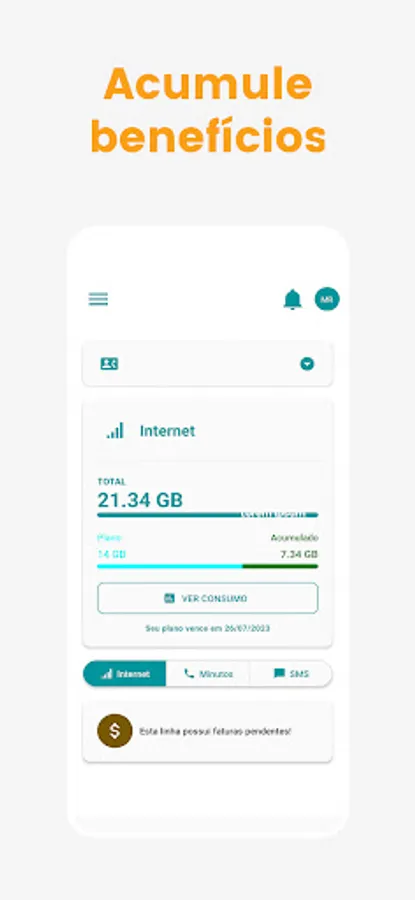 At Alloo Móvel you don't have to go to the lottery to pay your bill, that's a thing of the past! You do everything through the app, pay by PIX, Boleto, Credit and Debit Card.
