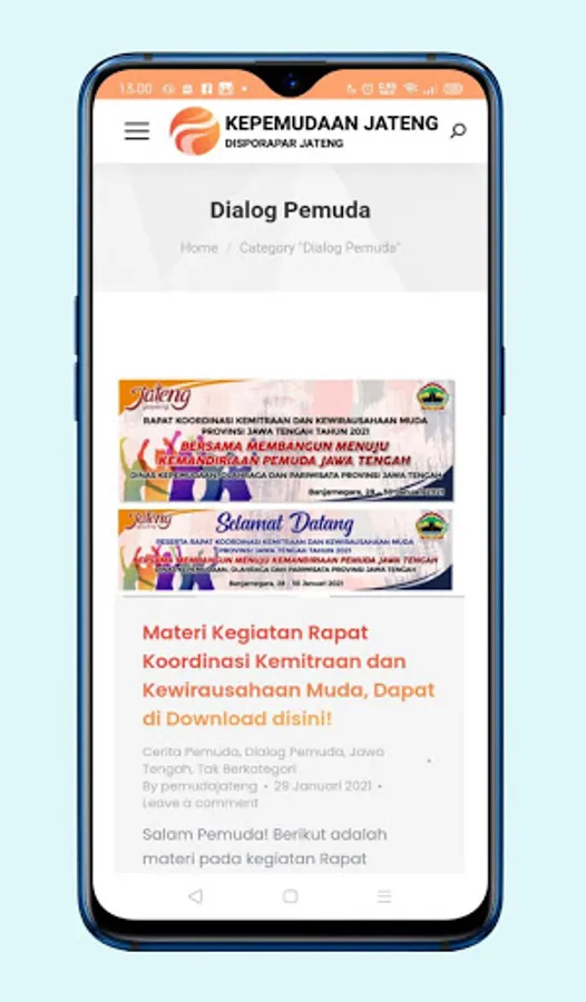 Aplikasi android berbasis webview milik Disporapar Jateng yang memberikan Informasi seputar kegiatan Kepemudaan Jateng