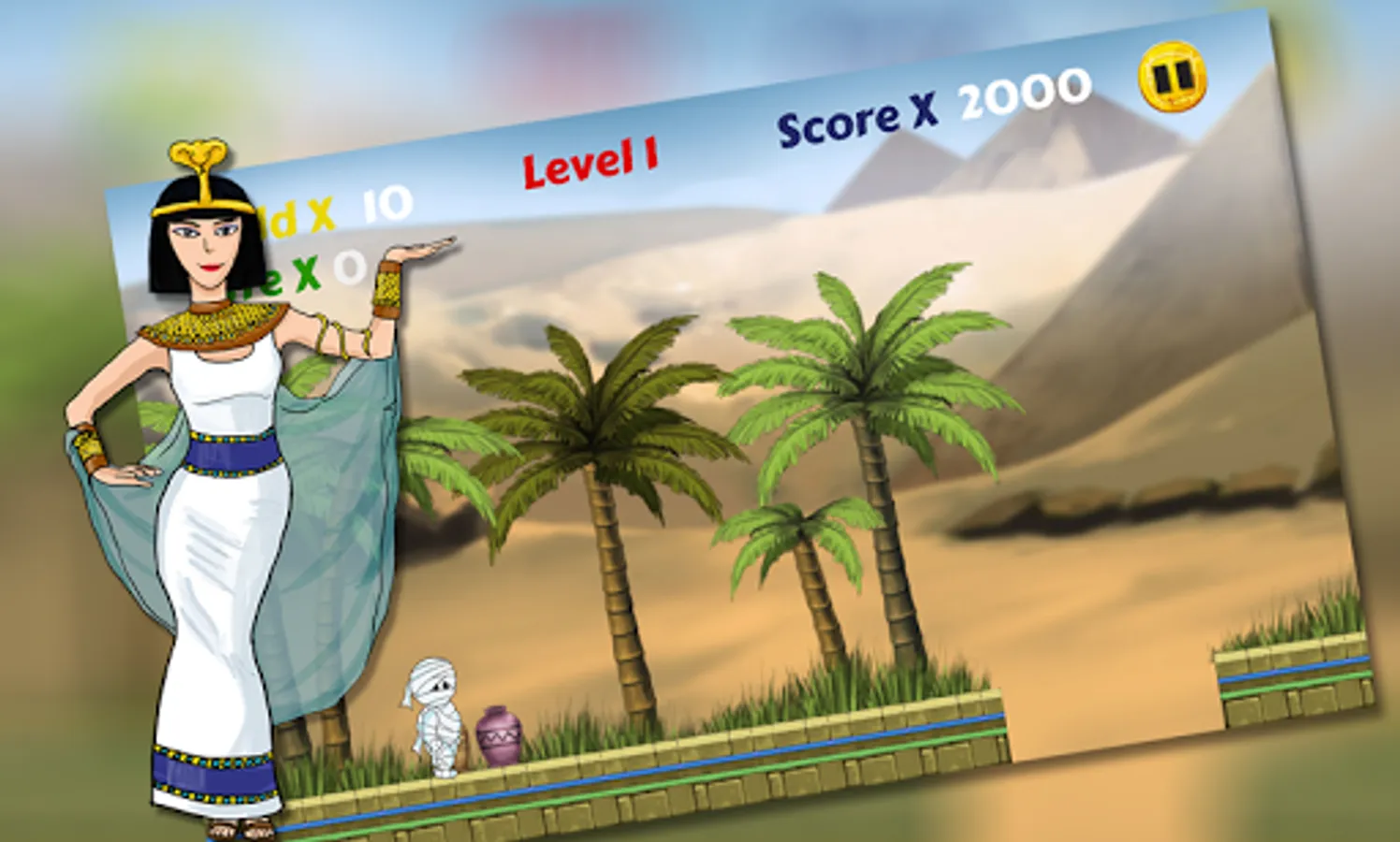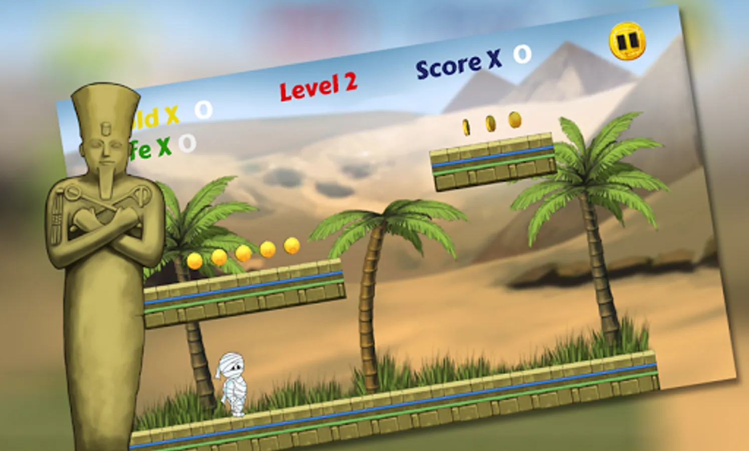 Egypt Mummy Run is an cute and fun little mummy running and jumping adventure game. Help the cute little egyptian mummy to reach Cleopatra's Gold Treasure. Collect as many gold as possible on the way to the gold treasure. Hunt the Treasure as soon as possible Tap to jump and double tap to double jump and escape the pitfalls. Run with the little mummy and help it to collect the treasure.