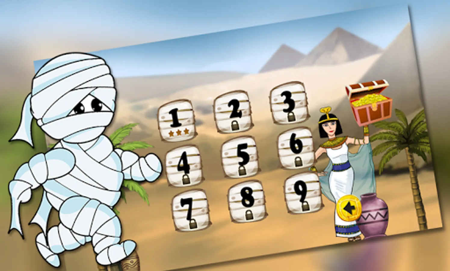 Start playing egypt mummy run game and complete all the challenging levels to collect the treasure.