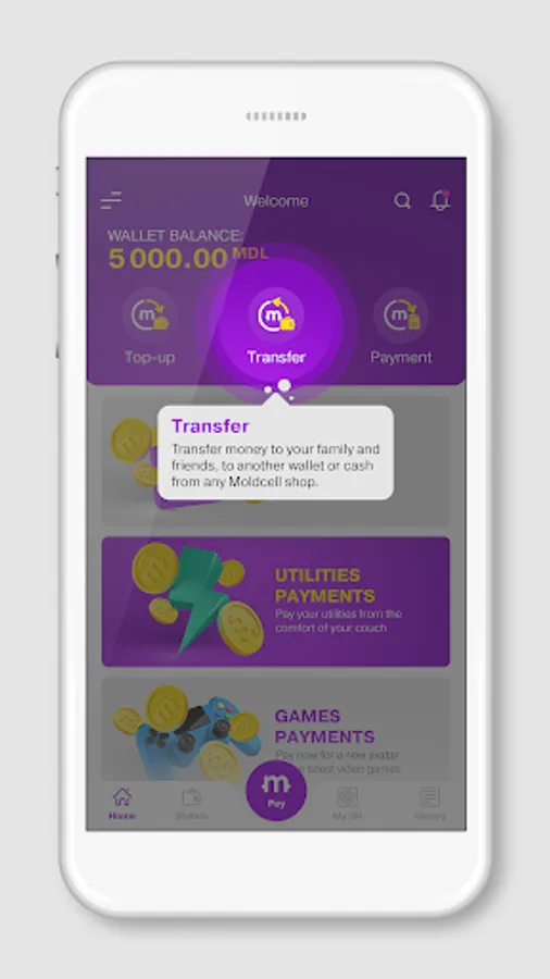 moldcell money is a digital wallet allowing you to pay services such as loans, utilities, games and many more. You can also send and receive money. Fast, comfortable and secure.
