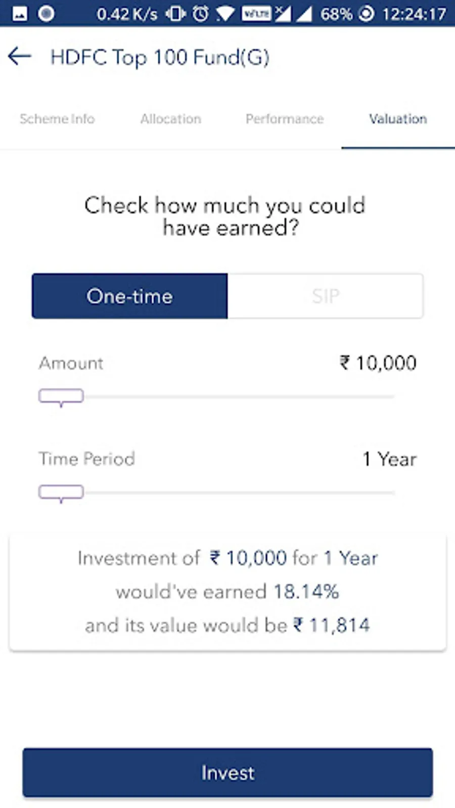 Through this app, KYC complaint investors can onboard themselves in less than 5 mins and invest instantly into Mutual Funds by doing an SIP or doing Lumpsum transaction.