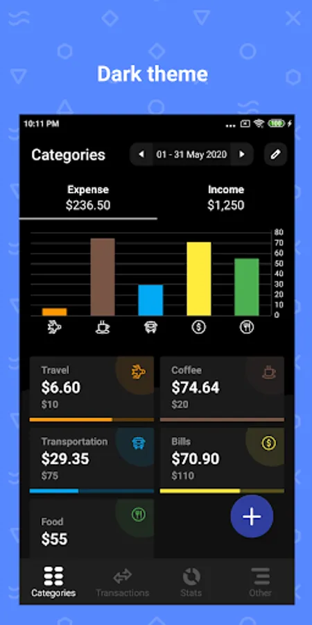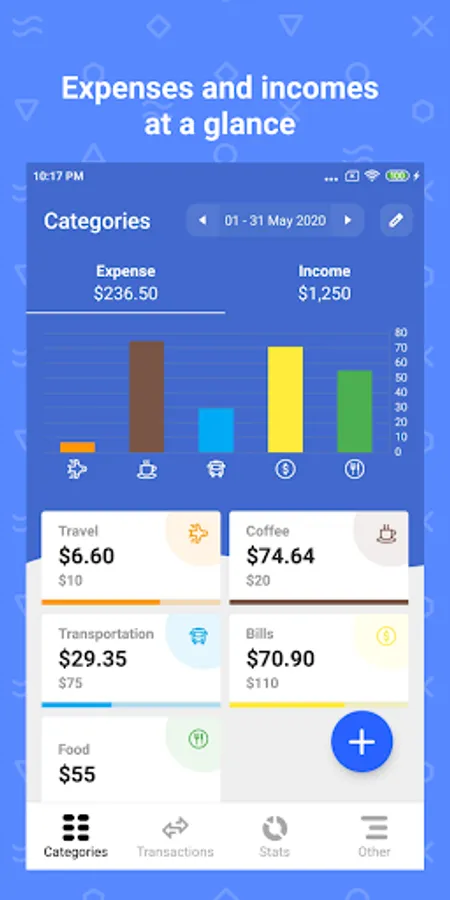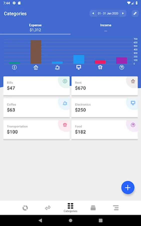 Get informative insights on your finances, based on your Categories, Sub Categories, and Accounts.