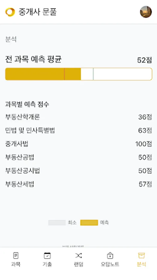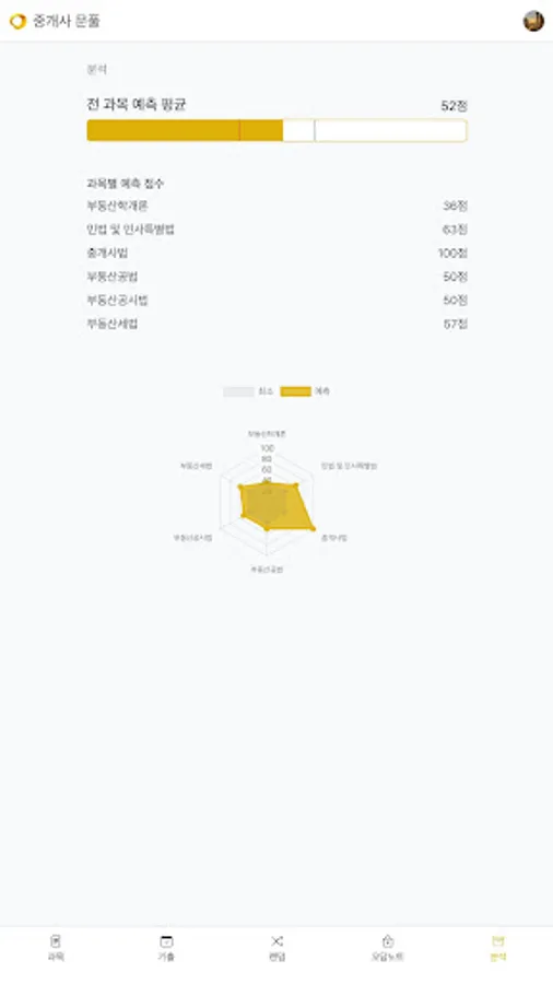 Analyze your predicted score by subject and your weakest subjects.