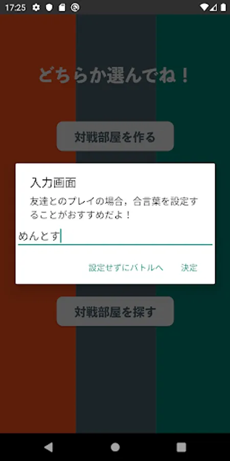 通信対戦に関して友達同士でマッチングしたい場合は,ホスト側で対戦部屋の名前の設定を行い,ゲスト側は設定した対戦部屋の名前を検索することを推奨しています.